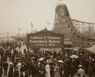 By 1884, he had secured his own patent (U.S. Patent No. 310,966 for a “Switchback Railway” or “Roller Coasting Structure”) and set his sights on Coney Island—a bustling seaside resort in Brooklyn, New York, teeming with crowds but rife with vice.