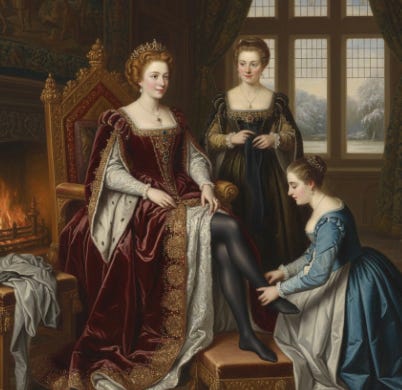 By the 1500s knitting technology improved. Queen Elizabeth I famously received her first pair of black silk stockings in 1560 and allegedly vowed never to wear cloth hose again because silk was so much softer and stretcher.